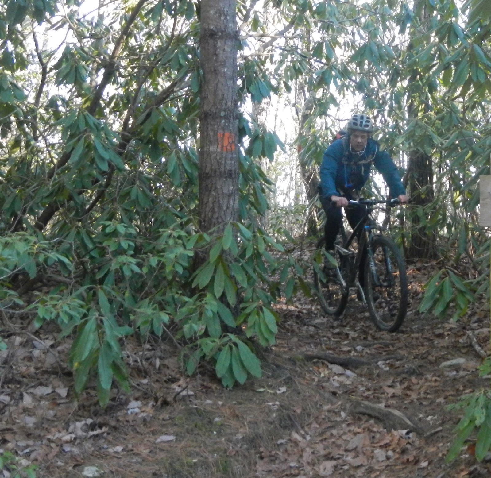 HQ starts out with a bang dropping off quick with a lot of baby head size rocks through a large part of the down hill. I recently installed a 2.4" wide Continental X-King tire on my front wheel. I am rolling the 2.2 tuble-less stock, non-Conti in the back but plan to buy a 2.2 X-King for the back. I have more traction with the bigger tire in the front but trying to keep down the rolling resistance using the smaller tire on the drive wheel in the rear.